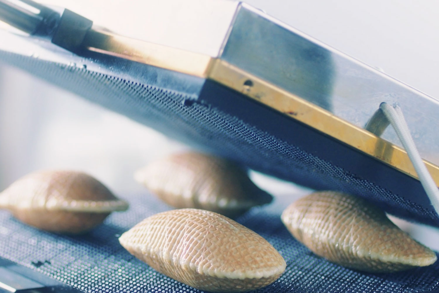 また、1つのゴーフレットが完成するまでに重ねる工程の1つ1つも味わいとなるよう、一連の製造工程が見えるガラス張りの空間に仕上げました。